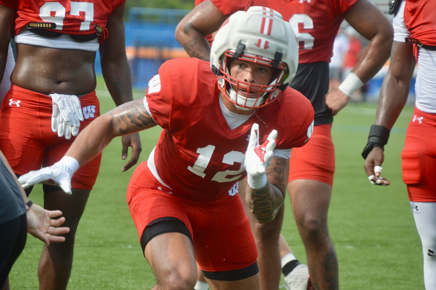 Clayton was still chasing high school quarterbacks at this point last fall at Gainesville Buchholz High School in Florida, then went on to become an All-American Bowl participant and early enrollee at Wisconsin in January. He considerably bulked up from 200 to 237 pounds from the winter to the summer, and he’s currently now sitting around 230 as a contributor on special teams and defense.