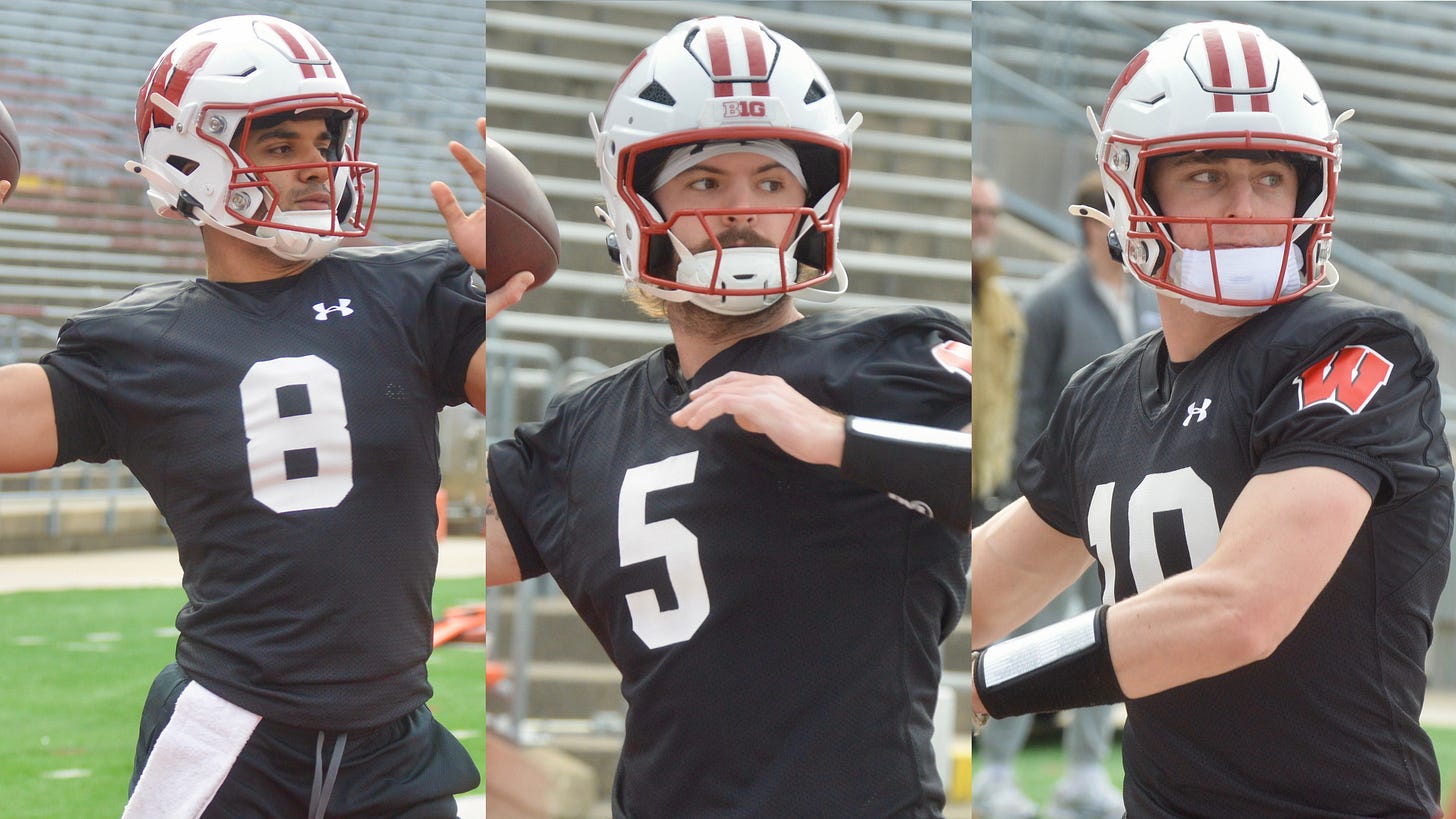 How Colton Joseph continues to progress with the University of Wisconsin football program’s offense is one spring storyline to monitor. Yet one can argue there’s more intrigue of how the pecking order behind him at quarterback begins to work itself over the next few weeks.